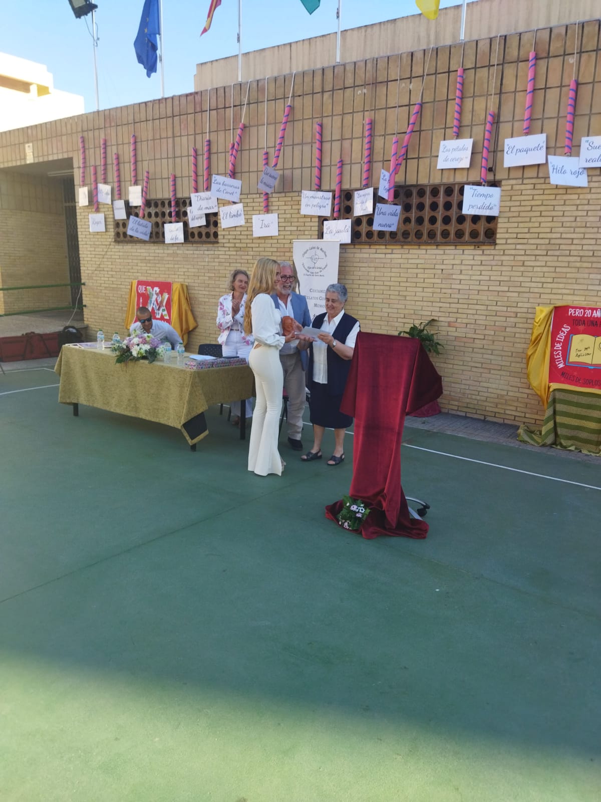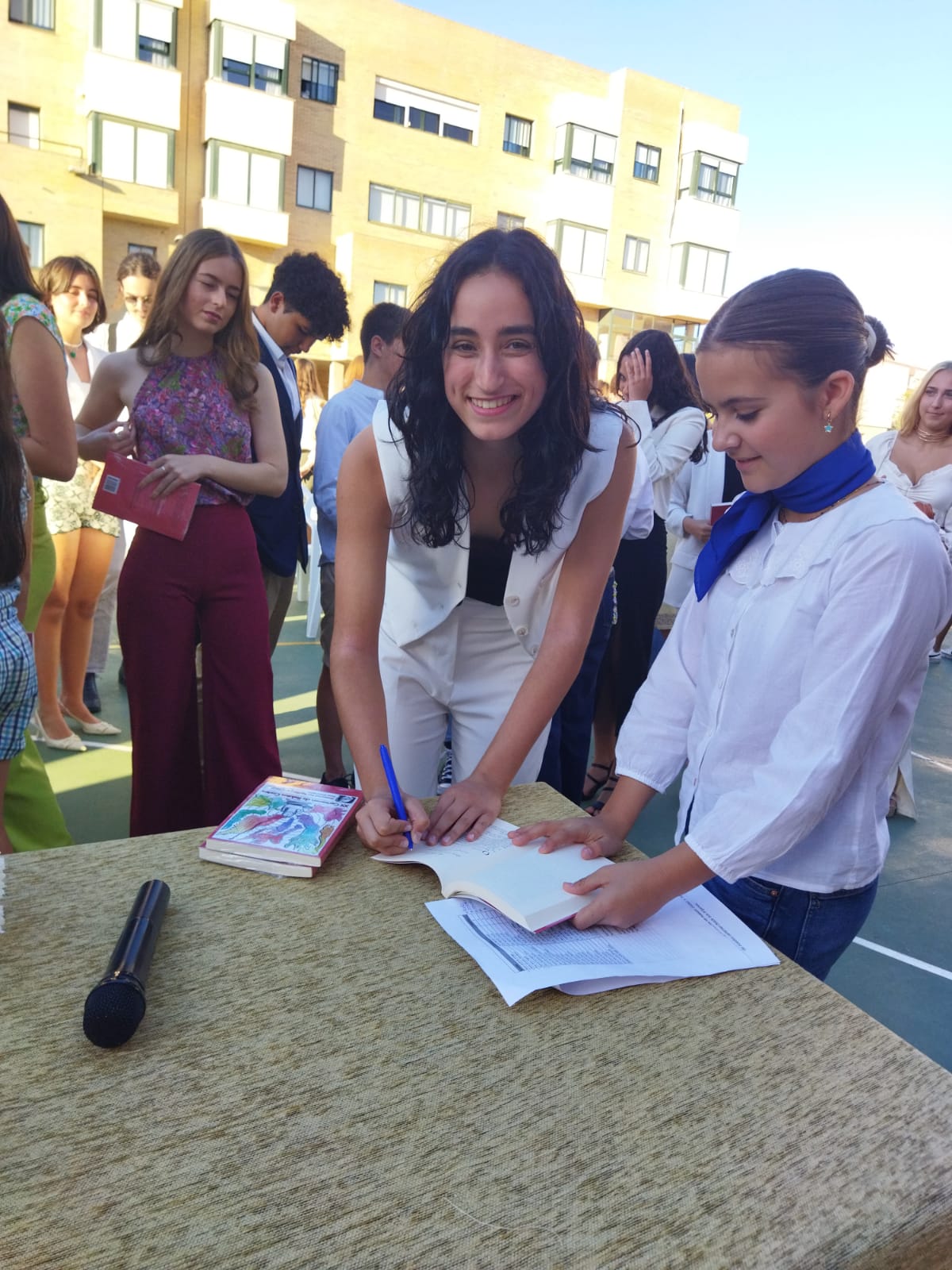 Todos los trabajos de los finalistas están presentes en un libro publicado y en el que firmaron los autores de los relatos, lo que llenó de más emotividad el acto que se celebró en el patio del colegio y que contó con la presencia de representantes políticos y del mundo literario y cultural.