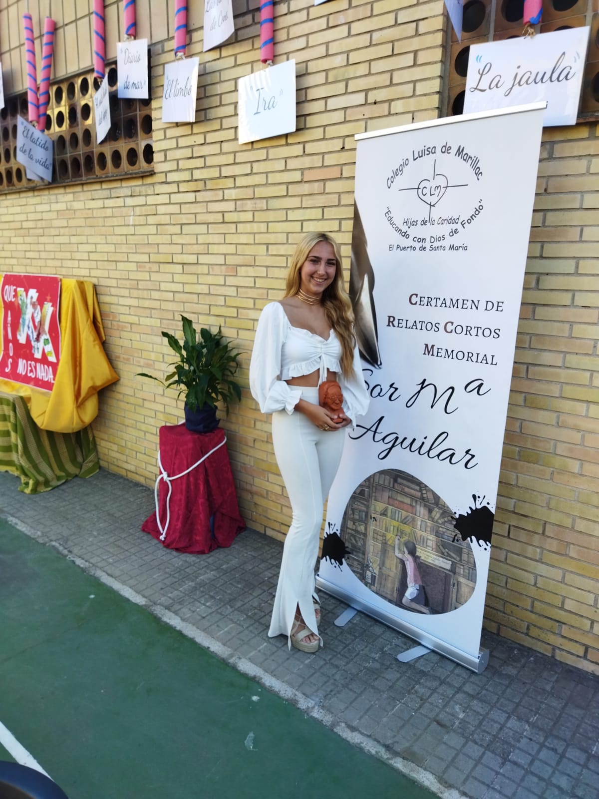 La alumna del colegio Liceo Karem Gutiérrez Arteaga se alzó el cuatro de junio,con el Primer Premio de relatos cortos en el XX Certamen Memorial Sor Aguilar, celebrado en el Puerto de Santa María y que tiene categoría autonómica. El relato presentado bajo el título de Ira reunía sentimiento, lucha, verdad, recuerdos y una calidad literaria que el jurado supo valorar y de ahí que le otorgara este galardón de entre las 121 obras presentadas al certamen. De todas ellas, 23 accedieron a la final y cinco alumnos de nuestro colegio estuvieron en la misma, Manuel Domínguez y Elena Mendoza de 2º de ESO, Alicia Domínguez e Inés Tosso de 4º de ESO e Irene Devesa de 2º de Bachillerato, alumnos que presentaron unos relatos de magnífica creación literaria, en un certamen en donde centros de la provincia de Cádiz, Sevilla, Almería, Málaga y Jaén estuvieron presentes, dándole un enorme prestigio a este certamen de carácter autonómico, que cumple ya la vigésima edición. Este evento, organizado por el colegio portuense, Luis Marillac, es todo un referente cultural y literario en la Bahía de Cádiz, de ahí la importancia de conseguir premios en el mismo, como lo han hecho la alumna del colegio Liceo, Karem y los otros alumnos del centro que gozaron de una mágica tarde durante el cato de la final.
