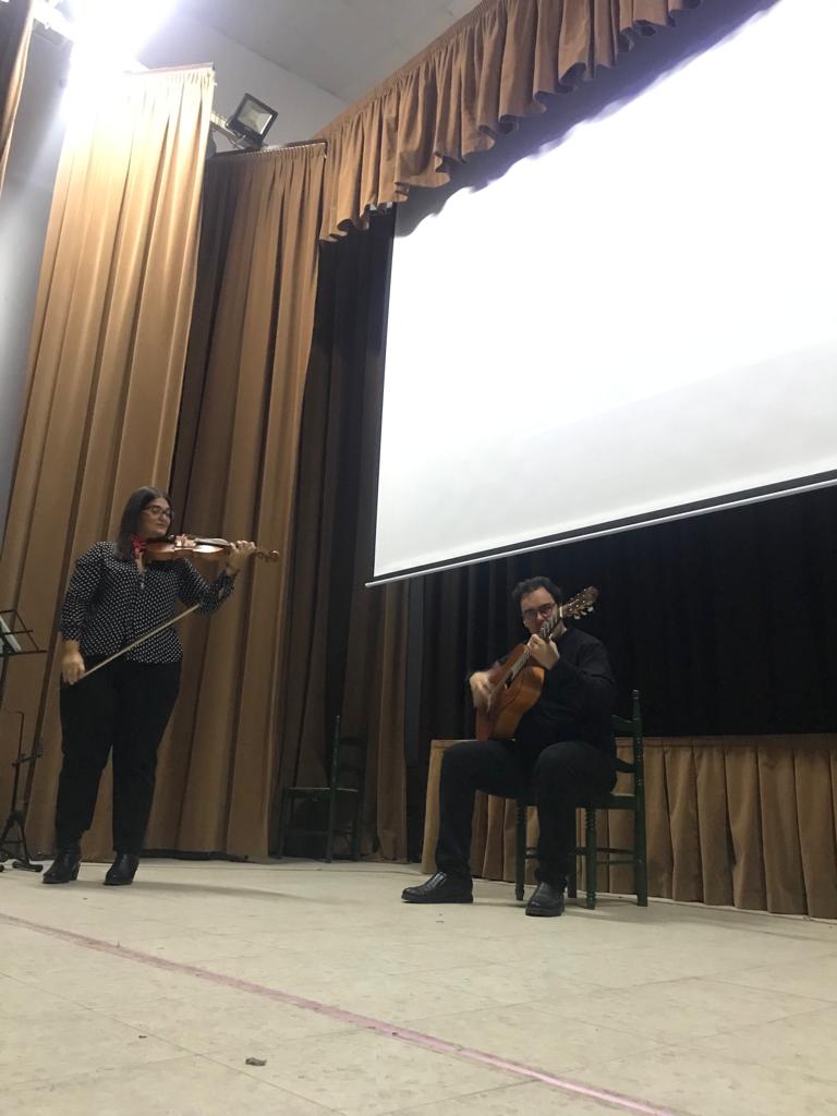 Muy original fue la interpretación del tanguillo carnavalesco “Aquellos duros antiguos” a violín y guitarra, al igual que El vito y la rumba flamenca “Entre dos aguas”.