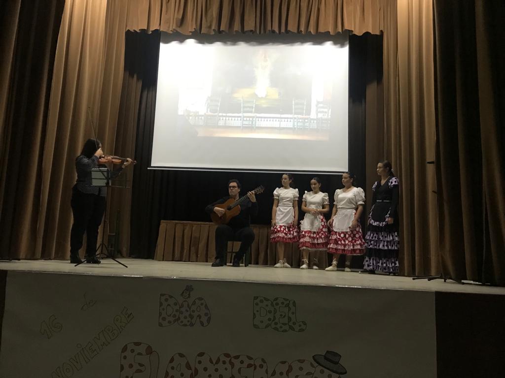 El jueves, 16 de noviembre, se ha conmemorado el Día Internacional del Flamenco en la etapa de Secundaria. Organizado por Alicia Aragón, profesora de música del centro, se ha celebrado, según sus palabras en la presentación del acto, “nuestra esencia”.